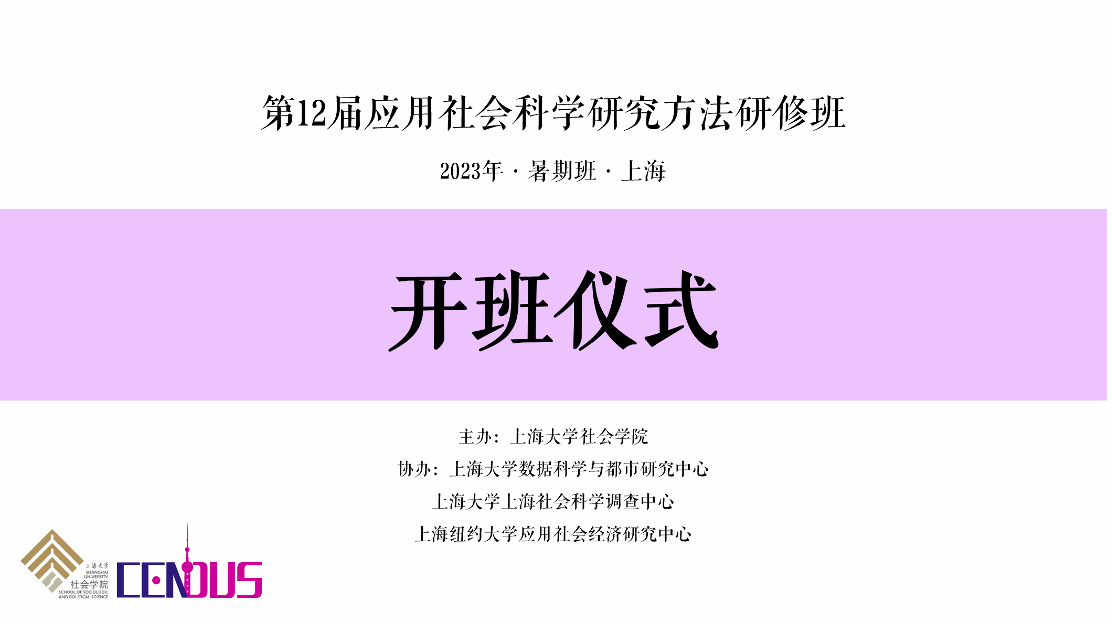 7月3号上午8:00,由华体汇平台入口登录主办,hth网页版最新登录地址数据科学与都市研究中心、hth网页版最新登录地址社会科学调查中心以及上海纽约大学应用社会经济研究中协办的第12届应用社会科学研究方法研修班基础班(2023·暑期班)正式开班。本次基础班通过线下面授和网络直播相结合的方式授课。自招生简章发出以来,本次基础班总计收到了240份报名申请,最终录取了177名学员。学员来自全球百余所高校及科研单位,包括本硕博各阶段学生及教职人员。