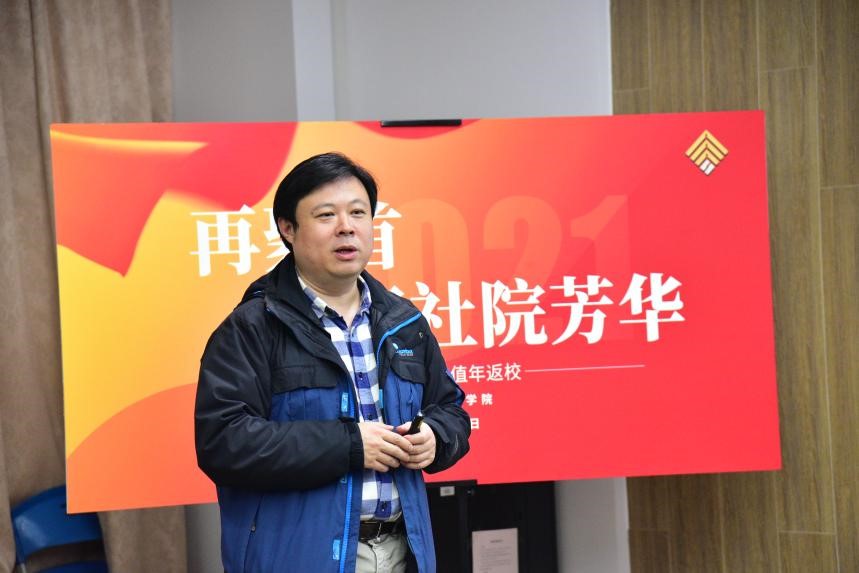 再颂师恩,共话窗谊。作为导师代表,张江华老师、耿敬老师和刘玉照老师分别表达了对校友们重回母校再次相见的喜悦之情。同校友们一同回顾了十年前的青葱时光,为校友们如今的成长和成就感到欣喜。随后校友代表为老师们献上鲜花,感恩学院老师的辛勤培养。2011届值年校友与2021级本科新生也进行了一场“跨越十年的对话”,校友们结合自身经验,就学习计划、生活规划、思维方式培养等内容为学弟学妹们提供针对性指导。