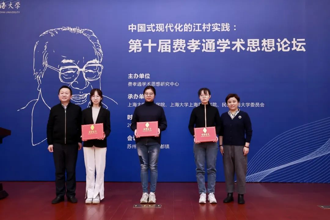 费孝通学术思想研究中心秘书长秦钠,华体汇平台入口登录副院长纪莺莺为费孝通优秀论文奖获得者颁奖。